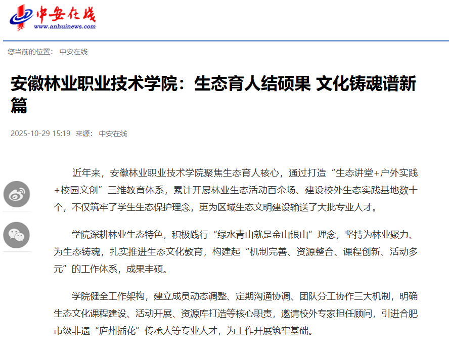安徽林業職業技術學院2025年招生章程